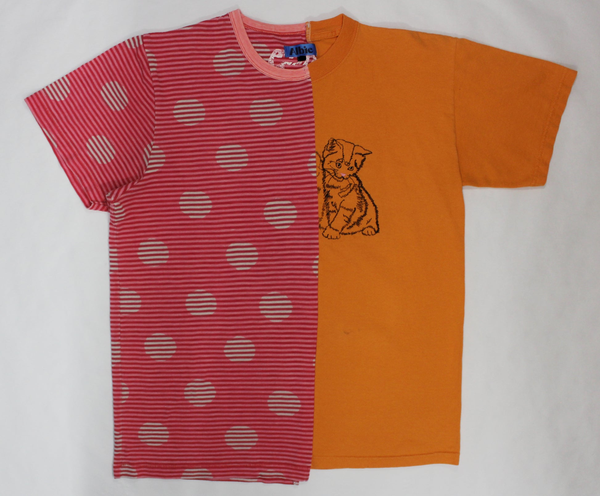 Meow...Caution! There may be nicks, holes, or spots that come with each pre-loved tee combo. One of a kind - look carefully!