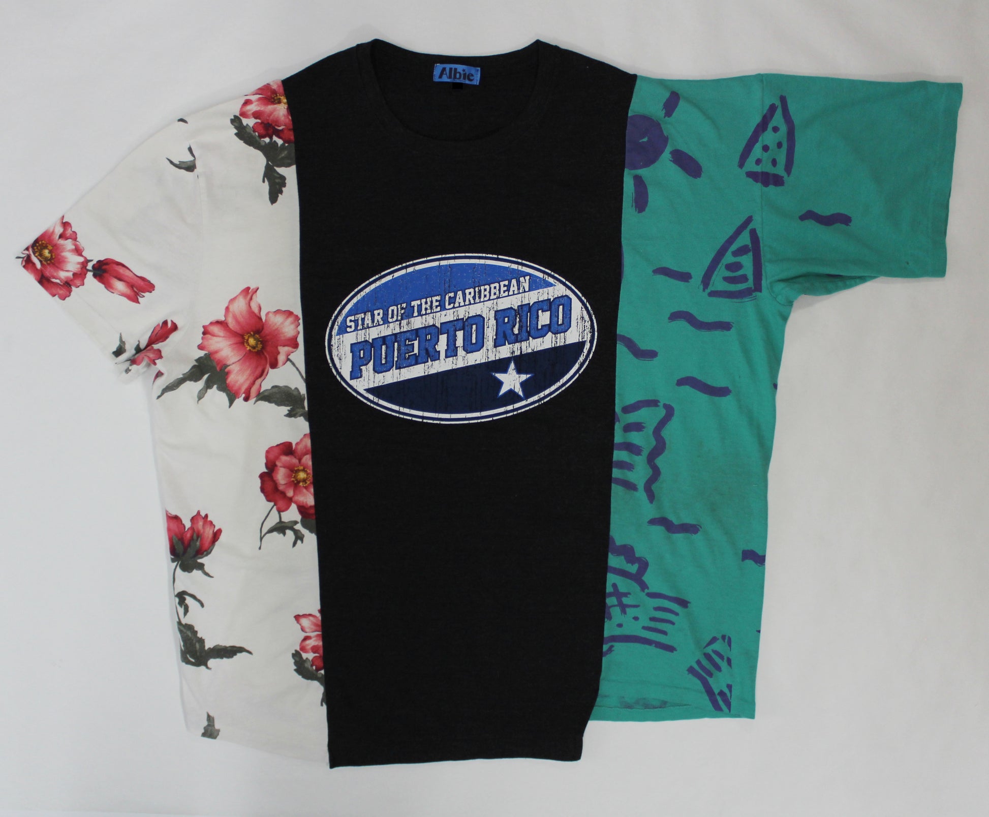 Three shirts chopped, reworked, and sewn into one damn comfortable tee.