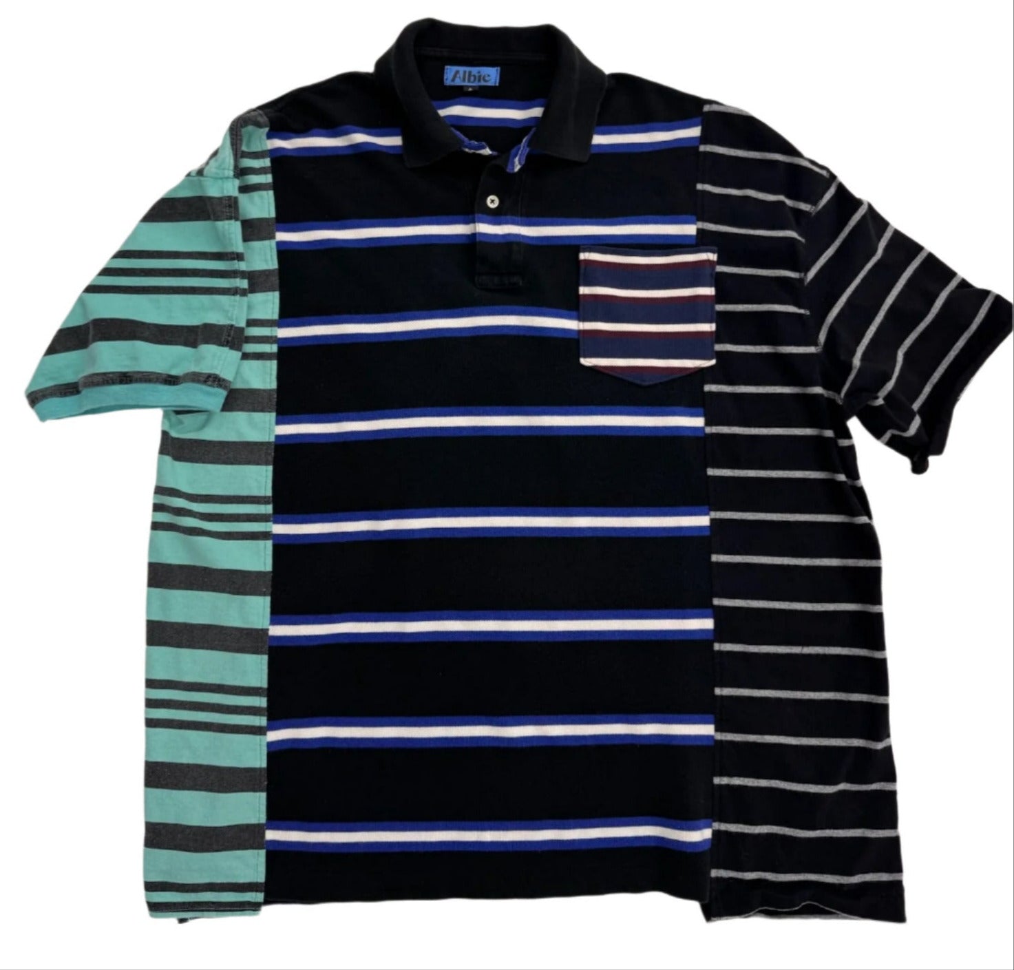 Three polos chopped, reworked, and sewn into one damn comfortable top- with a pocket.